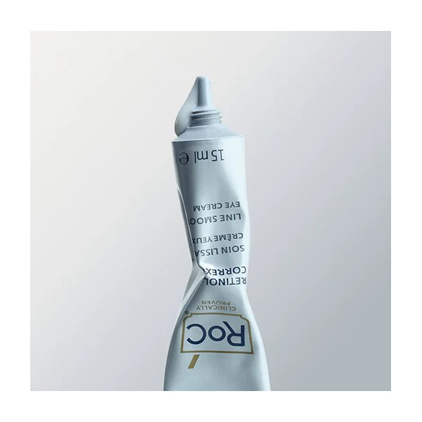 Le Retinol Correxion Soin Lissant Crème Yeux contient une formule concentrée en RoC rétinol. Ultra efficace, elle est douce et s’adapte parfaitement à la peau délicate du contour de l’œil. Véritable révolution en matière de soin cutané, cet actif est plus puissant que le rétinol classique et compatible en usage quotidien avec les épidermes sensibles. La marque a spécialement combiné 3 techniques (stabilisation, encapsulation et effet boosting) pour augmenter l’efficacité du rétinol. Ainsi, il peut être utilisé à des doses 10 fois moins importantes.