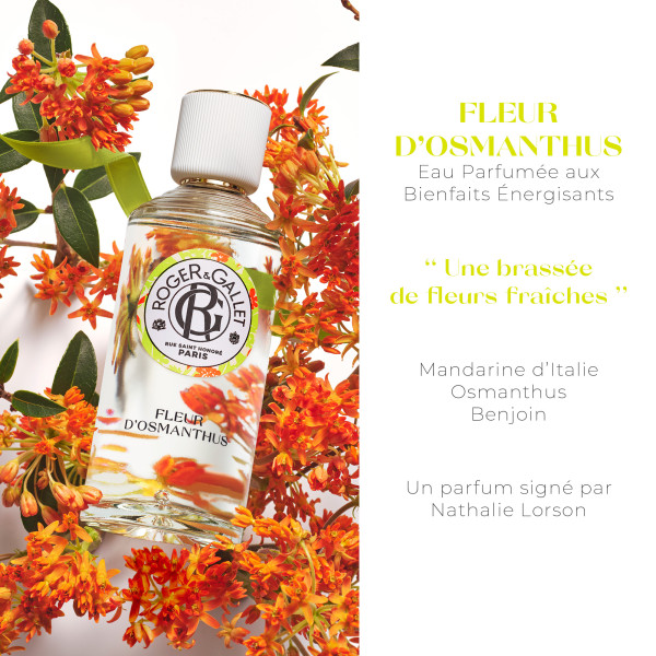 L'Eau Parfumée Bienfaisante Fleur d'Osmanthus de Roger & Gallet mêle douceur et caractère pour une parenthèse sensorielle raffinée grâce à son délicat bouquet floral sublimé par l'osmose de la fleur d'osmanthus. Elle apporte fraîcheur et bien-être pour le corps et l'esprit.