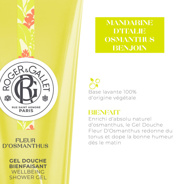 Le Gel Douche Bienfaisant Fleur d'Osmanthus de la marque Roger & Gallet dévoile une mousse fine et onctueuse au parfum floral pour nettoyer en douceur la peau. Formulé pour respecter l'équilibre cutané, il apporte une sensation de fraîcheur et de bien-être.