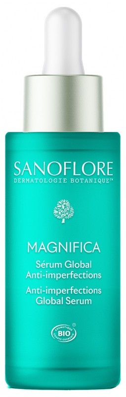 Le sérum Global Anti-Imperfections Bio de la gamme Magnifica du laboratoire Sanoflore est un soin correcteur global anti-imperfections pour les peaux mixtes à grasses et à tendance acnéique. Il agit sur les boutons, les marques, les points noirs et les pores dilatés.