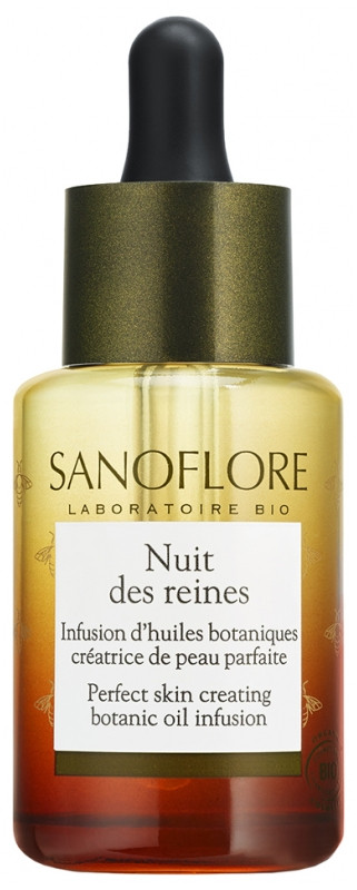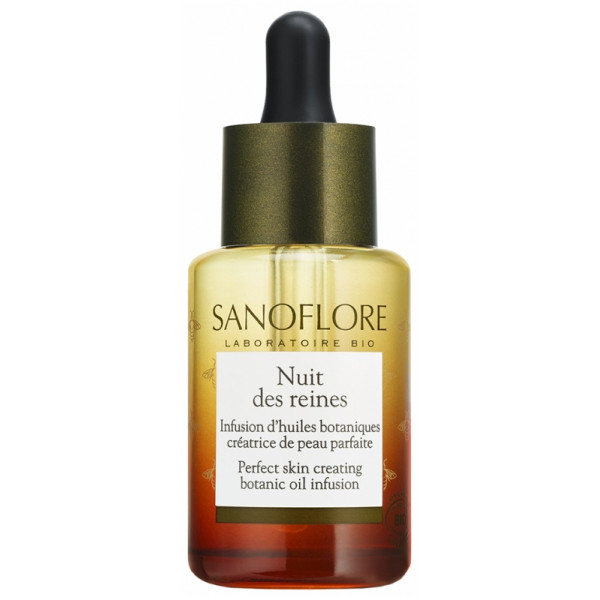 Le soin Nuit des Reines bio de SANOFLORE est une infusion d’huiles botaniques qui permet des défroisser les traits des peaux fatiguées. Cette infusion régénère la peau et lui apporte de la lumière.