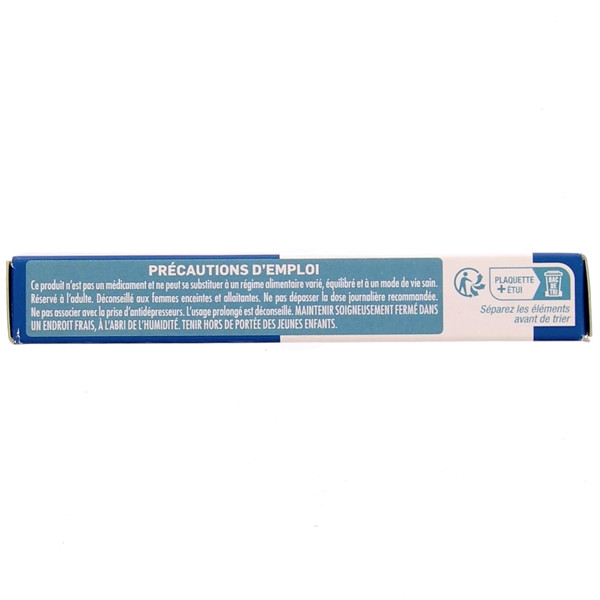 Ce complément alimentaire est hautement dosé en griffonia. Il s’agit d’une plante intégrant des graines de 5-HTP titrées à 30 %, un acide aminé précurseur de la sérotonine, connu pour être l’hormone du bonheur. Relaxphyt Surmenage x20cpr sécables Santé Verte est conditionné dans une boîte de 20 comprimés pour une utilisation jusqu’à 1 semaine.