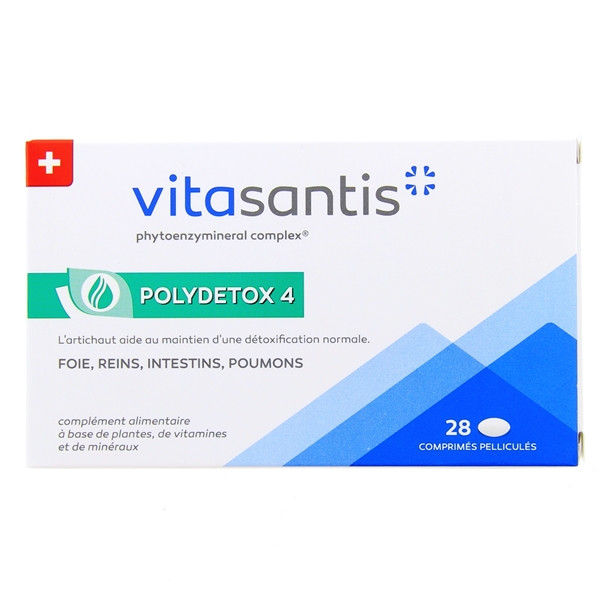 Détoxifiant et antioxydant, Vitasantis Polydétox est un complément alimentaire indiqué pour stimuler les métabolismes du foie, des reins et des intestins. Il est conseillé de prendre 4 comprimés de Vitasantis Polydétox par jour. Ce complément alimentaire Vitasantis est à prendre dans le cadre d’un régime alimentaire varié et équilibré ainsi que d’un mode de vie sain.