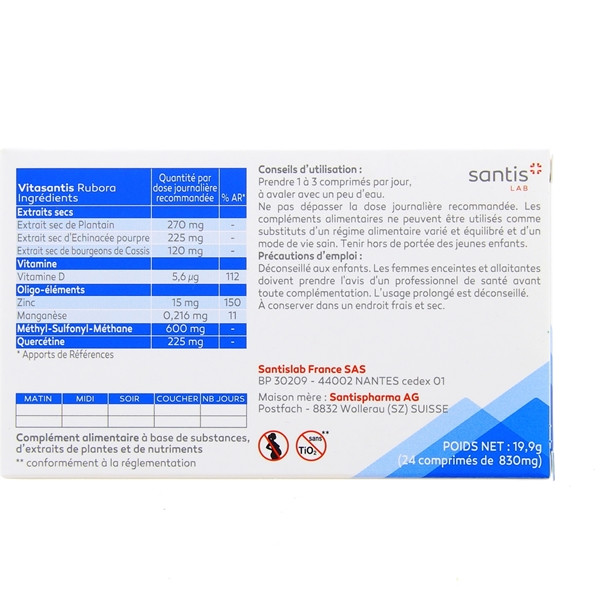 Conditionné sous forme de 24 comprimés pelliculés, ce produit est conçu par Santis Lab, un laboratoire franco-suisse.