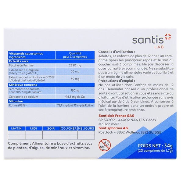 - Vitasantis Savestomac est réservé uniquement aux adultes et aux enfants plus de 12 ans.