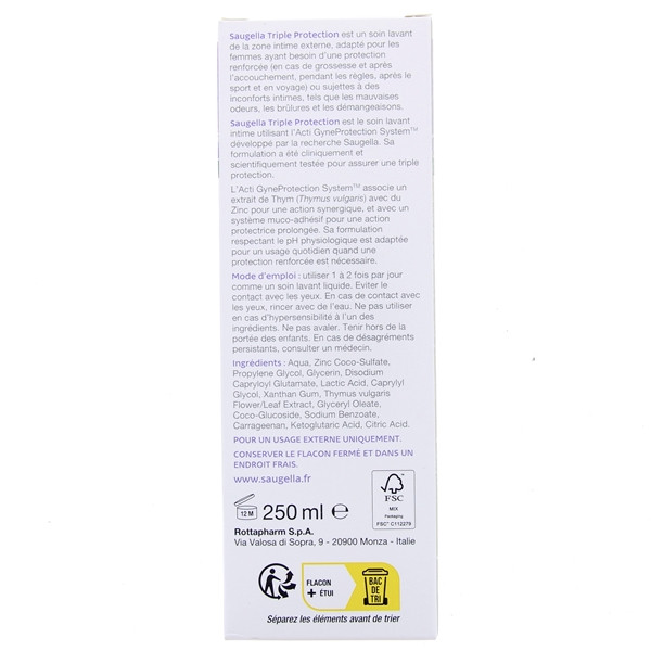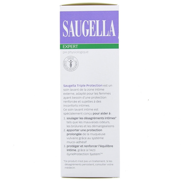 Le soin lavant Triple Action Saugella est à éviter en cas d’hypersensibilité à l’un de ses ingrédients. Il est conseillé de ne pas mettre ce soin lavant en contact avec les yeux et de rincer avec de l’eau dans le cas contraire. Il est conseillé de tenir ce soin lavant Saugella hors de portée des enfants.