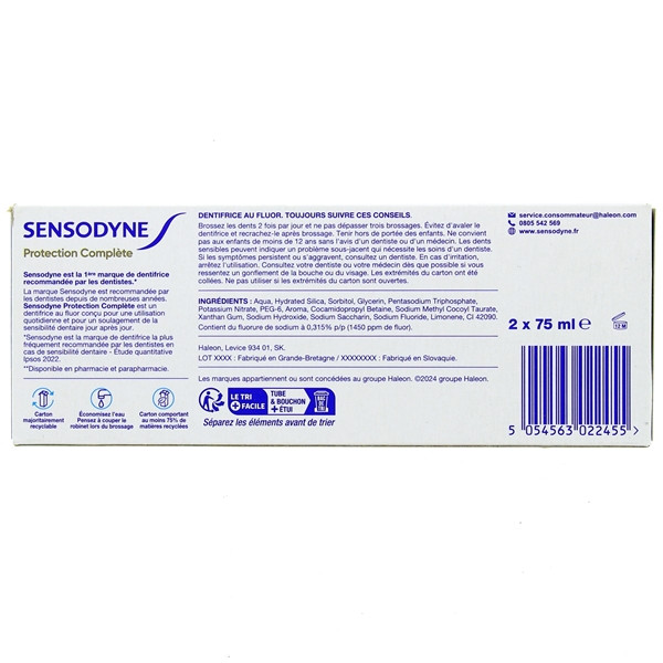 Dentifrice Protection Complète est fabriqué en France par Sensodyne. Les experts de cette marque ne cessent de mettre au point des formules uniques pour offrir aux personnes affectées par des problèmes de sensibilité dentaire des soins performants sur le long terme.