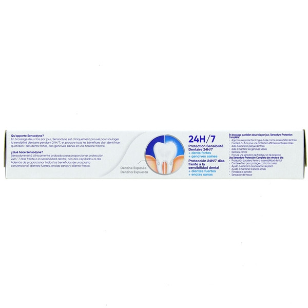 Sensodyne Protection Complète est un dentifrice quotidien spécialement formulé pour soulager et protéger durablement les dents sensibles.