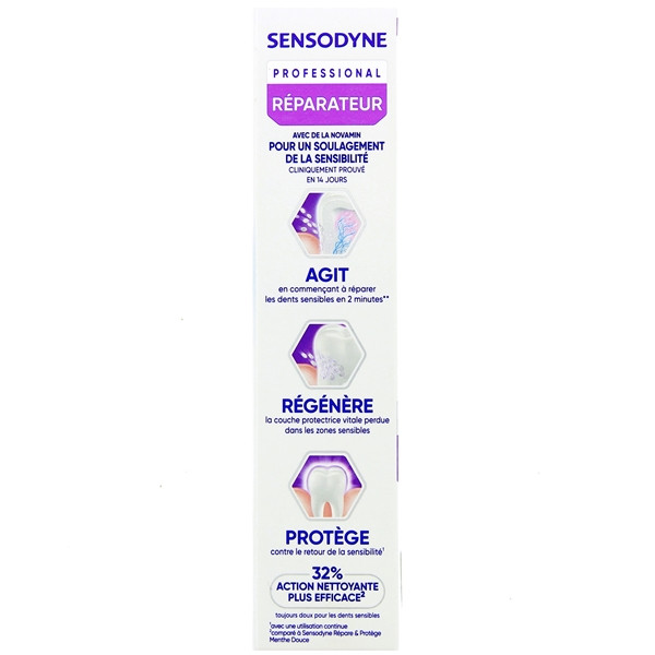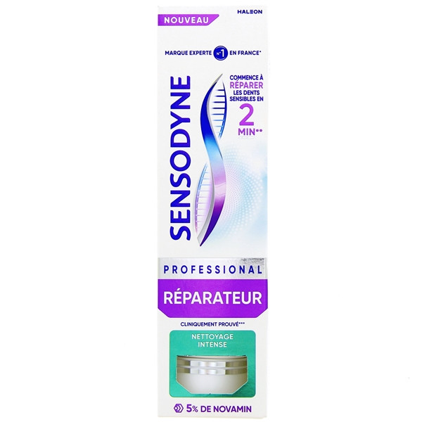 Le Dentifrice Professional Réparateur Nettoyage Intense Sensodyne est spécialement formulé pour les dents sensibles. Il aide à réparer les zones fragilisées de l'émail dentaire, offrant ainsi une protection durable contre la sensibilité dentaire. De plus, il assure un nettoyage en profondeur, éliminant ainsi efficacement la place dentaire.