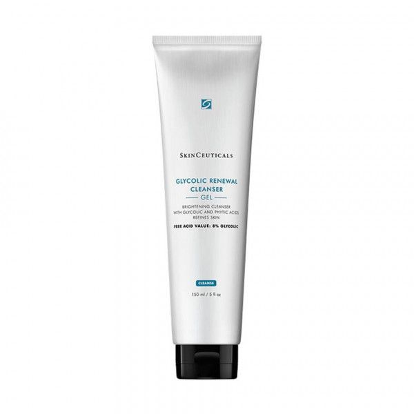 Le Glycolic Renewal Cleanser de SkinCeuticals est un nettoyant-gel moussant à haute concentration d’actifs, conçu pour corriger le teint terne et la texture de peau rugueuse. Il renferme de l’acide libre dont 8 % d’acide glycolique et 1 % d’acide phytique pour éliminer en douceur les cellules mortes accumulées en surface et afin de stimuler le renouvellement cellulaire.