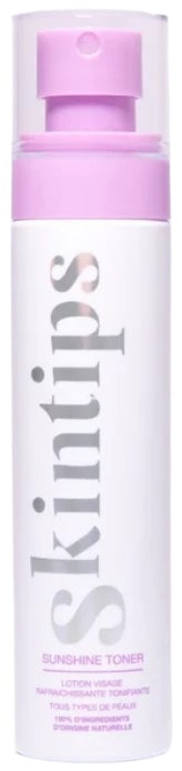 Sunshine Toner de la marque Skintips est une lotion tonique pour le visage parfaite pour finaliser le démaquillage, resserrer les pores et éliminer les résidus de calcaires présents dans l'eau. Avec 100 % d'ingrédient d'origine naturelle, cette lotion convient à tous les types de peaux dès 12 ans.