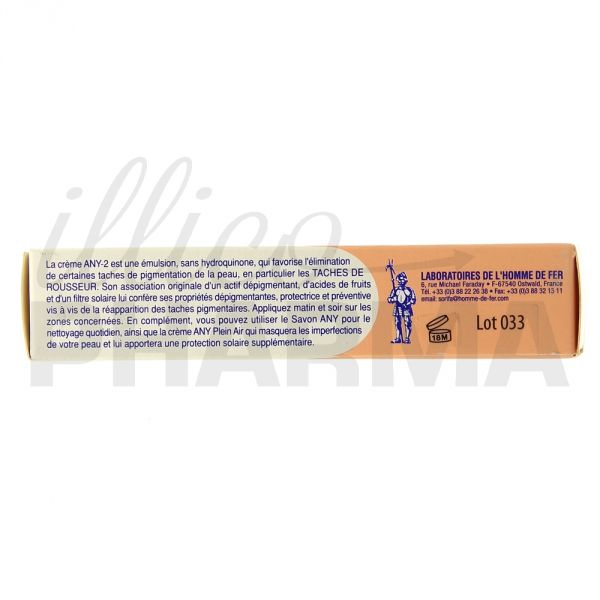 Dépourvue d'hydroquinone, la crème Any 2 est sans danger pour la peau.