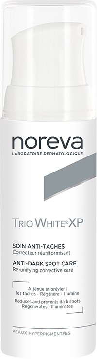 Pour lutter durablement contre les taches brunes, les laboratoires Noreva ont élaboré la nouvelle génération de soin de jour dépigmentant Trio White. Le complexe réductol et Vita C2G contenu dans ce soin bloquent la production de mélanine dans la peau. Sa formule enrichie en réflecteurs de lumière limite les agressions en captant les rayons UV. Le soin de Jour dépigmentant Trio White renferme également du White XL. Cet actif empêche le transfert de la mélanine. L'hydratation quotidienne est assurée par les agents hydratants présents dans le soin de jour Trio White.