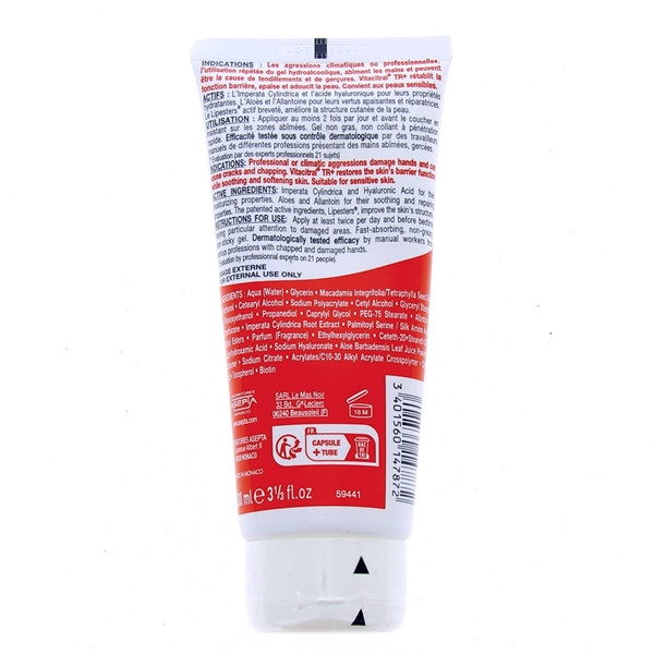 Le gel TR très réparateur Vita Citral de la marque Asepta est une crème nourrissante, formulée spécialement pour les mains abîmées et gercées. Formulée à partir d'une association de glycérine végétale, de vitamine A et d'aloe vera, cette crème hydrate les mains en profondeur pour apaiser les sensations de démangeaisons et d'irritations. Les actifs contenus dans la crème profitent par ailleurs de propriétés naturelles réparatrices et régénératrices, idéales pour favoriser la cicatrisation des crevasses et renforcer l'action naturelle de protection cutanée.