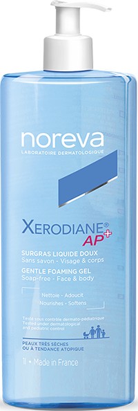 Pour la toilette quotidienne du VISAGE et du CORPS, adapté aux peaux SECHES et TRES SECHES, SENSIBLES à tendance ATOPIQUE. Disponible en flacon de 1L.