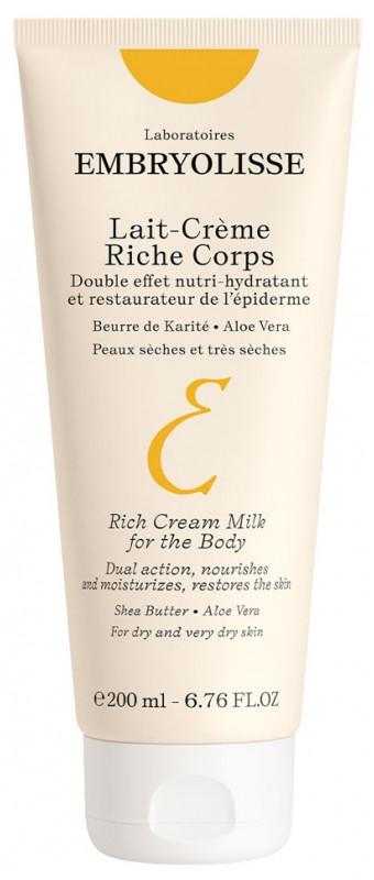Le Lait-crème Riche Corps des laboratoires Embryolisse hydrate, nourrit et répare l'épiderme des peaux sèches et très sèches.