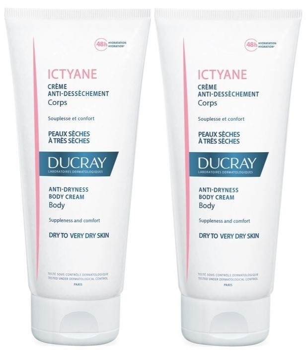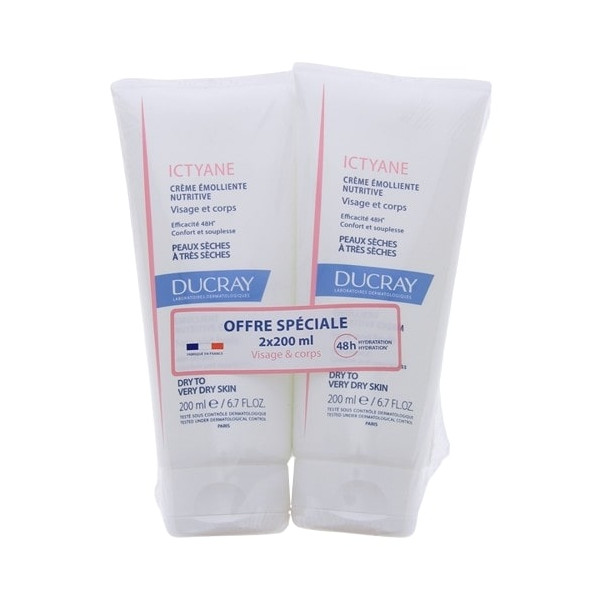 Dans un lot de 2x200 ml, conditionnée en tube, découvrez la crème anti-dessechèment Ictyane des laboratoires Ducray, constituée de vaseline et de glycérine pour une hydratation maximale de la peau. Grâce à une formule haute tolérance, ce soin hydratant, non comédogène et sans paraben, peut être utilisé sur tous les types de peaux.