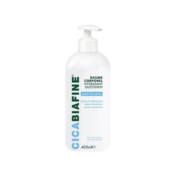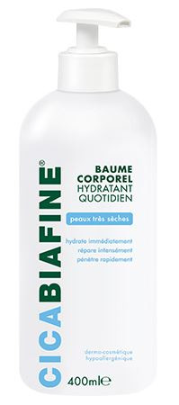 Le baume corporel hydratant Cicabiafine répare les peaux très sèches, voire craquelées grâce à sa formulation à base d'acide hyaluronique qui est reconnu par les médecins pour ses caractéristiques réparatrices. Ses principales actions consistent à apaiser la peau, l'hydrater à l'application et la réparent, notamment les peaux sèches. Ce produit est hypoallergénique. Son application convient vis-à-vis d'un assèchement de la peau, que ce soit d'origine constitutionnelle ou suite à des agressions externes. Le baume s'adapte également aux peaux sensibles.