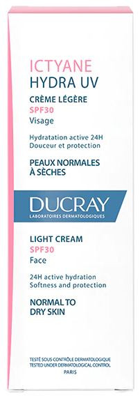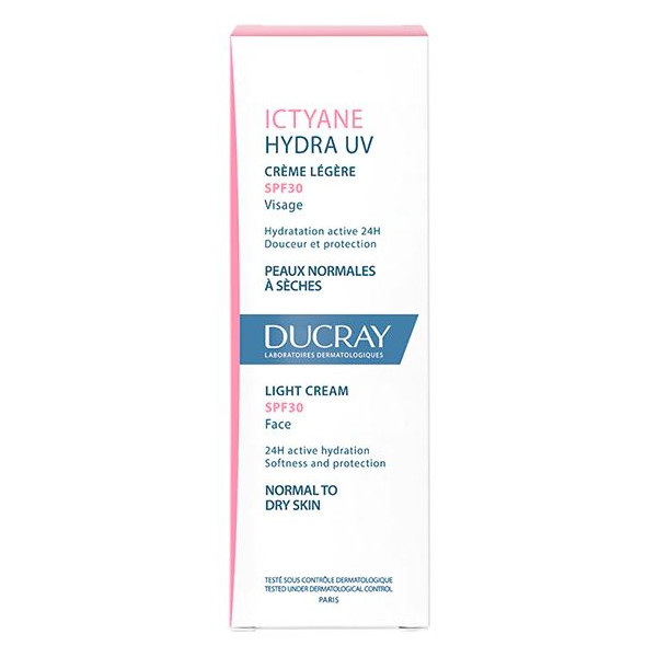 Ictyane Hydra Crème Légère Visage SPF30 est un soin quotidien hydratant du visage, adapté aux peaux normales à sèches, afin d'apporter une hydratation active de 24 heures et une protection contre les rayons solaires.