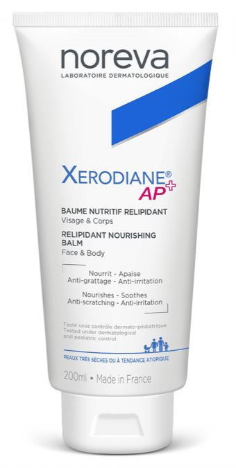 Le baume nutritif relipidant Xerodiane AP Plus de Noreva, disponible en tube de 200 ml, pénètre immédiatement, ne laissant ni film gras ni collant sur l'épiderme. Ce soin est formulé à base du système Aquaperfus, permettant de garder un taux d’hydratation optimale le plus longtemps possible.