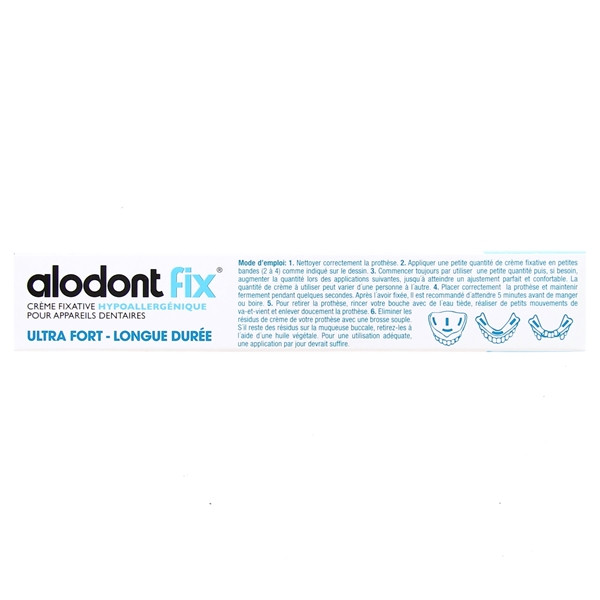 Crème FIXATIVE ultra forte pour APPAREILS DENTAIRES, permettant une fixation immédiate et durable pendant toute la journée, forme un coussin adhésif, évite les irritations dues à l'insertion de particules alimentaires entre l'appareil et les gencives.