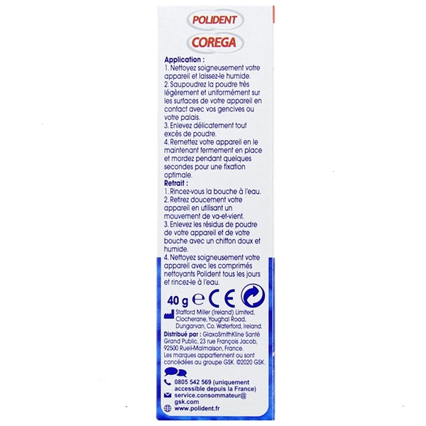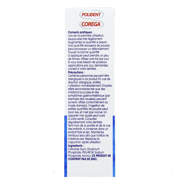 A la première utilisation, il est recommandé d'utiliser qu'un peu de poudre puis d'augmenter la quantité si cela est nécessaire. Une quantité trop importante de poudre peut entraîner un débordement. Appliquer la bonne quantité de produit peut nécessiter quelques essais et un peu de temps. Utilisez une fois par jour. S'il est nécessaire d'avoir recours à plusieurs applications par jour pour une bonne adhérence, demandez conseil à votre dentiste.