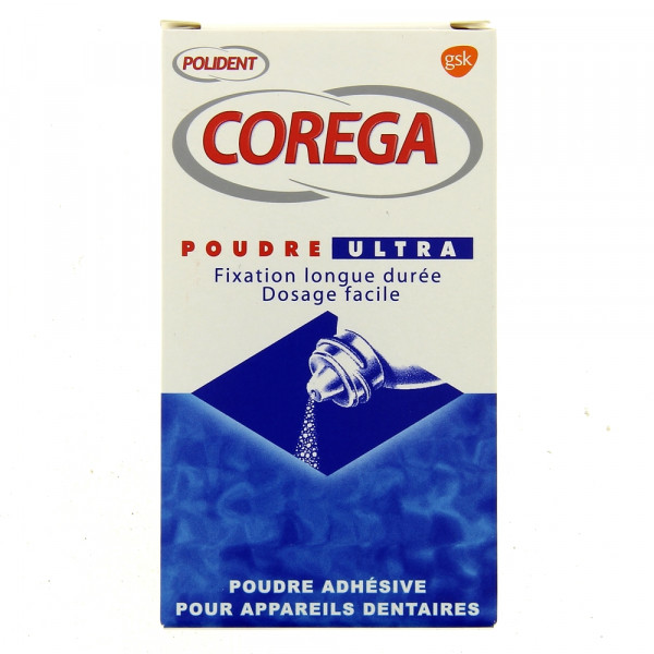 Corega Poudre Ultra est une poudre adhésive pour prothèses dentaires proposée par Polident. Sa formule spécifique apporte une adhérence longue durée aux appareils dentaires en toute circonstance. Le dosage de la poudre Ultra Corega est facile grâce à son bec verseur.