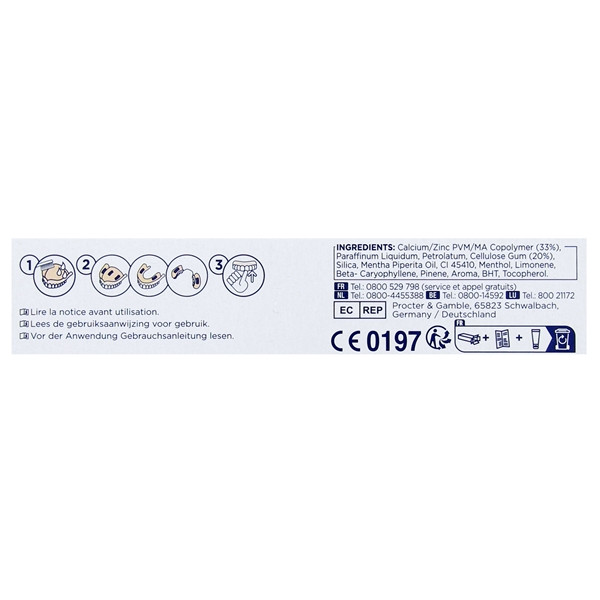 Au-delà de son pouvoir adhésif, Fixodent Pro Complete Arôme Frais procure une agréable sensation de fraîcheur grâce à son léger goût mentholé. De plus, son action antibactérienne contribue à une meilleure hygiène buccale et aide à prévenir la mauvaise haleine.