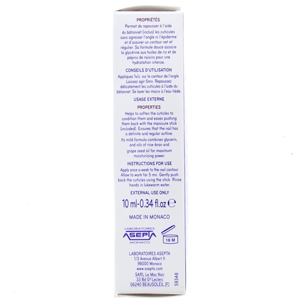 - Laissez agir environ 5 minutes avant de repousser les cuticules avec un bâtonnet.