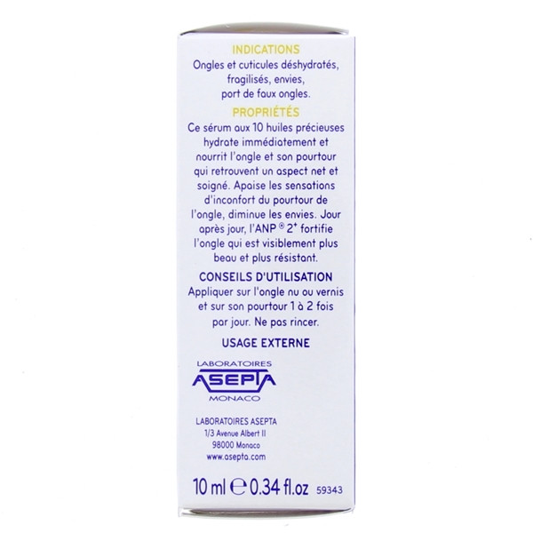 Le sérum réparateur pour ongles de la marque Ecrinal est indiqué dans le soin des ongles présentant des cuticules disgracieuses. Bénéficiant d'une formule enrichie de 10 huiles précieuses, ce sérum apaise instantanément les sensations douloureuses. Les essences de plantes naturelles présentes dans ce soin hydratent et nourrissent intensément les ongles et leurs contours. Elles agissent également sur la repousse des ongles et optimisent leur résistance. Le sérum réparateur pour ongles de la marque Ecrinal peut être appliqué sur de faux ongles.