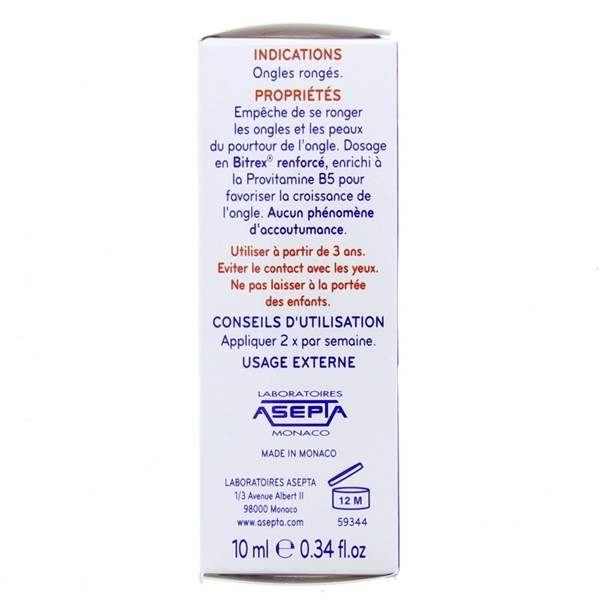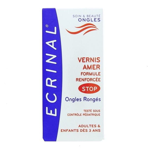 Formulé à base de Bitrex, un principe actif particulièrement amer et non nocif, le vernis Amer Ecrinal du laboratoire Asepta empêche les adultes et les enfants de se ronger les ongles et facilite la repousse de l’ongle.