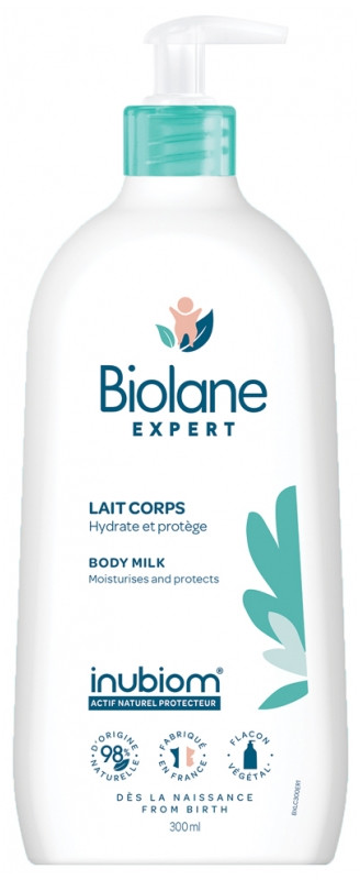 Sa formule enrichie en Inubiom, actif protecteur d'origine végétale, renforce et protège la peau de votre bébé. Il préserve l'équilibre cutané, pour une peau en pleine santé. Le lait pour le corps de la marque Biolane est disponible en flacon pompe de 300ml.