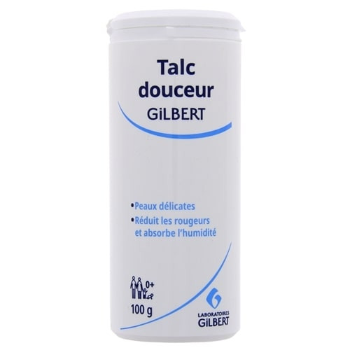 Gilbert Talc Douceur est indiqué pour l'hygiène et le soin de la peau. Grâce à ses propriétés adoucissantes et absorbantes, le talc aide à réduire les frottements et les rougeurs.