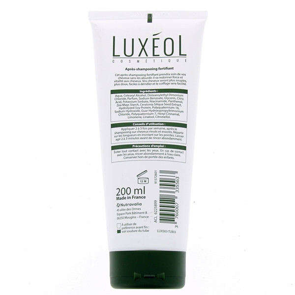 L’avantage supplémentaire est que son parfum naturel vient apporter une touche de fraicheur et d’authenticité à ce produit. Cette solution est connue pour démêler, hydrater et rendre éclatante. Aussi, Luxéol Après-Shampooing Fortifiant 200ml laisse vos cheveux entretenus de la racine jusqu’aux pointes. Il est également réputé pour être efficace et les résultats sont visibles presque immédiatement.