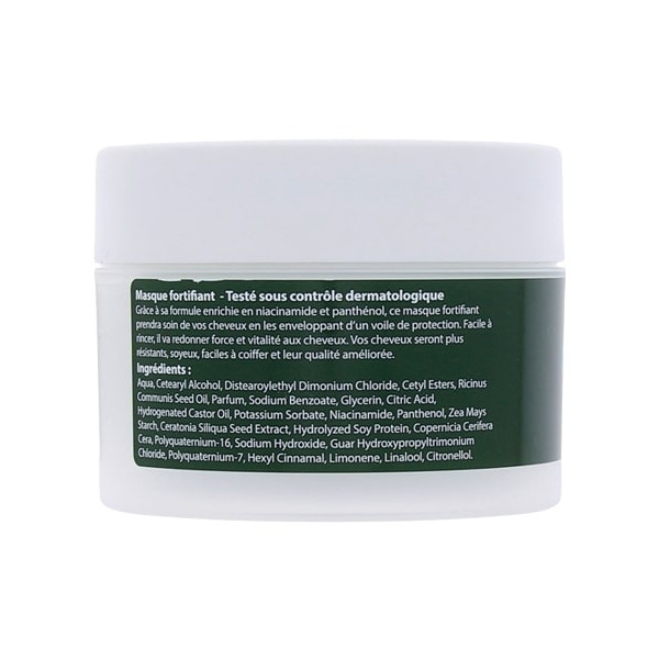Il doit son efficacité à sa formulation composée à 98 % d’ingrédients d’origine naturelle. Ce produit est enrichi en Provitamine B5 et en Vitamine PP. La Provitamine B5 répare et renforce les épis de la pointe à la racine grâce à ses propriétés fortifiantes. Quant à la vitamine PP, elle stimule la circulation sanguine au niveau du cuir chevelu de sorte à favoriser le renouvellement du follicule pileux. C’est sans compter le fait qu’avec l’action du niacinamide et du panthénol que ce masque contient, les cheveux sont enveloppés d’un voile protecteur.
