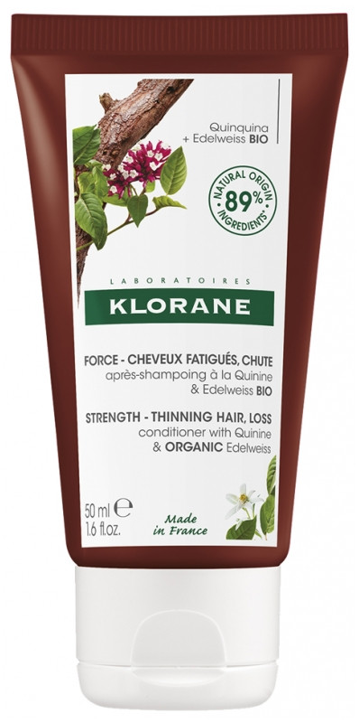 Klorane a conçu l’Après-shampoing Force - Cheveux fatigué et chute Quinine & Edelweiss BIO pour satisfaire les besoins des cheveux éreintés et pour freiner leur chute.