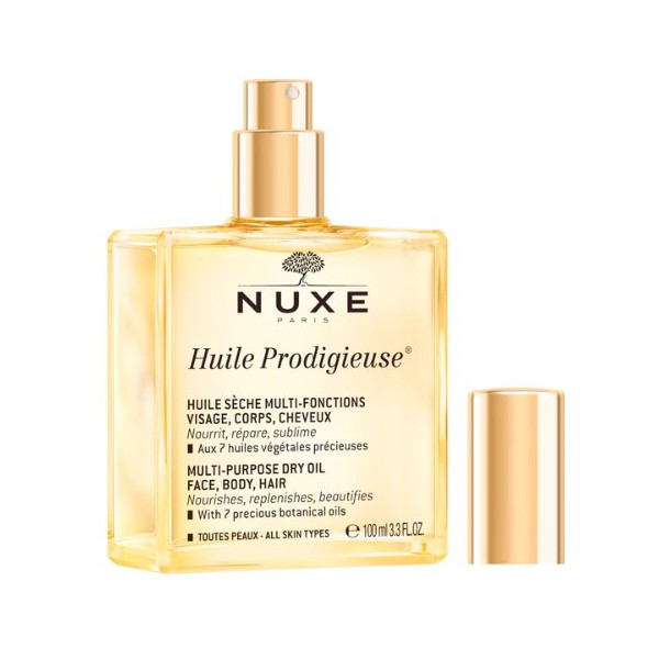Huile Prodigieuse est conçue avec un parfum agréable évoquant le soleil et le sable chaud avec un toucher sec inimitable. Grâce à sa fragrance, cette huile enveloppe votre corps et vos cheveux d’une senteur délicate. Ce soin contient un cocktail de 7 huiles précieuses qui sont 100 % végétales.