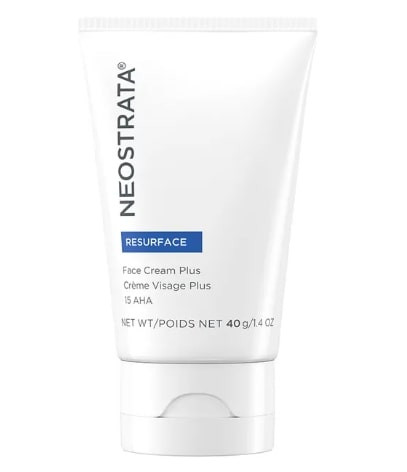Les actifs contenus dans la crème plus resurface de la marque Neostrata atténuent les marques du vieillissement sur le visage et redonnent de l'éclat aux peaux ternes.
