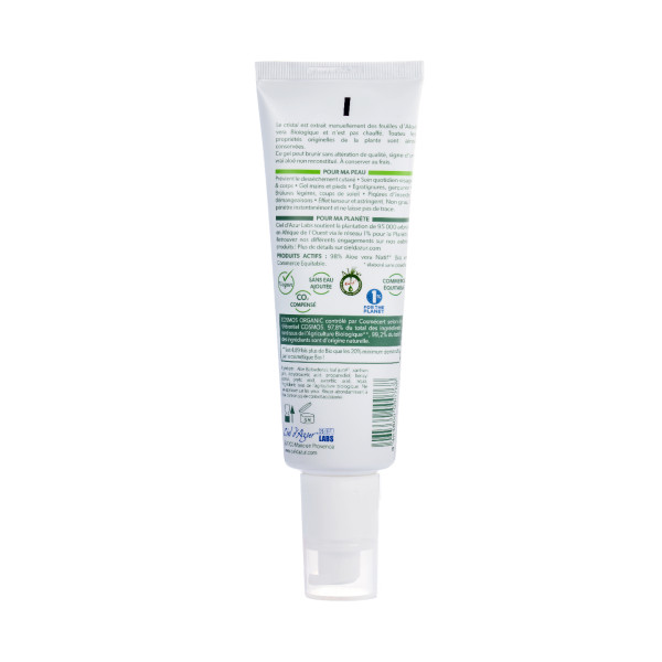 Pur Aloé Gel d’Aloé Vera Bio, en tube pompe 125ml, est fabriqué en France par Ciel d’Azur Labs. Tous les cosmétiques de cette marque sont certifiés Cosmos Organic, contrôlés par Cosmécert selon le référentiel COSMOS.