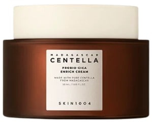 Madagascar Centella Probio-Cica Enrich Cream de la marque coréenne SKIN1004 est une crème riche et onctueuse formulée à base de Centella Asiatica fermentée, de beurre de karité et de céramide NP. Elle offre une hydratation intense sans effet lourd ni collant pour apaiser, hydrater et protéger les peaux sèches, normales et mixtes.