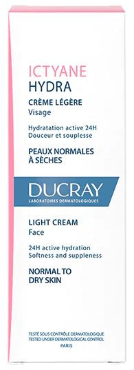 Cette crème légère Ictyane Hydra de Ducray est indiqué pour hydrater les peaux sèches du visage, souffrant de déshydratation, d'inconfort et de perte de souplesse.