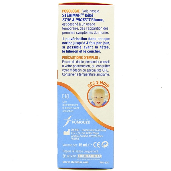 Stérimar Bébé Stop & Protect Rhume convient aux aux bébés dès 3 mois.