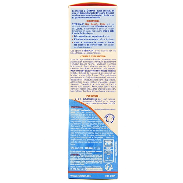 Stérimar bébé Hygiène du Nez est un produit des laboratoires Fumouze indiqué pour laver et décongestionner le nez des bébés dès 3 mois en cas de rhume.