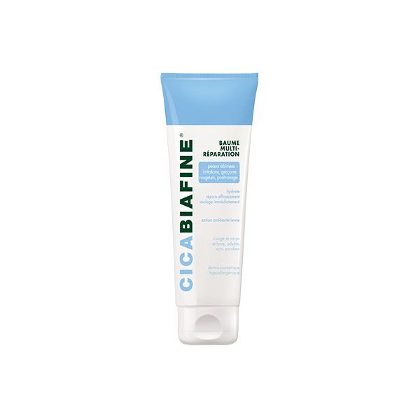 Le baume multi-réparation Cicabiafine de la marque Biafine est la solution recommandée pour une réparation intense des peaux abimées et sèches. L'action combinée du Zinc et de l'Acide hyaluronique contenus dans ce soin élimine efficacement les bactéries sur la surface de la peau. La glycérine apporte une hydratation durable et optimale aux peaux sèches. Formulé pour réduire tout risque d'allergie, le soin multi-réparation Cicabiafine ne contient pas de paraben. Il soulage rapidement la peau et apporte une sensation de confort immédiate. Grâce à sa texture, il est pratique à utiliser et ne colle pas.