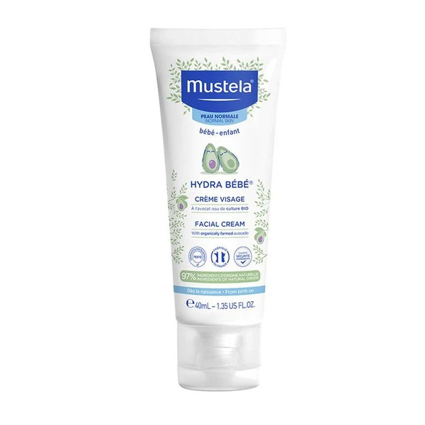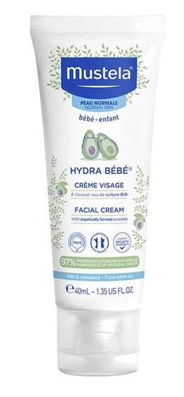 La crème Hydra Bébé est une crème pour le visage à l'avocat Bio de la marque Mustela est tout indiquée pour le soin quotidien du visage de bébé. Conditionné en tube de 40 ml.