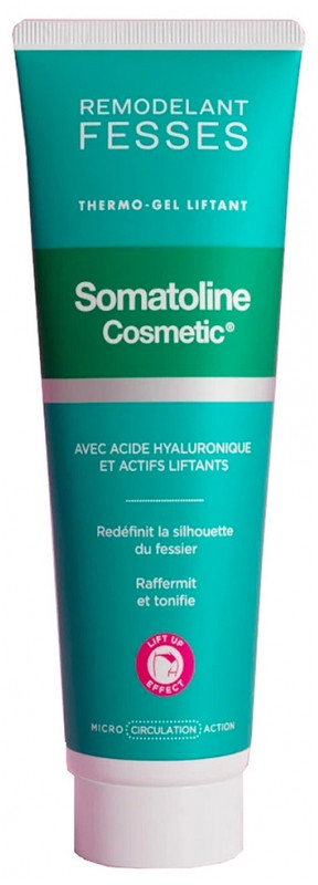 Remodelant Fesses Thermo-Gel Liftant 150ml de la marque Somatoline est un soin développé pour redessiner, lifter la zone des fessiers. Sa formule a été mise au point pour résoudre les problèmes de relâchement cutané sur cette partie du corps.