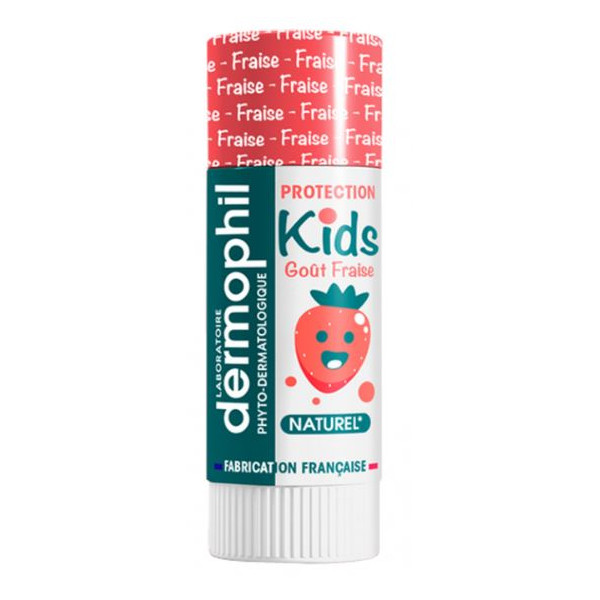 Découvrez Dermokid's, un baume labial développé par Dermophil Indien. Disponible en stick, à la saveur fraise.