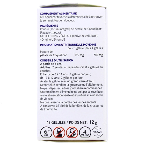 Le complément alimentaire Arkogélules au Coquelicot de la marque Arkopharma est un complément alimentaire tout indiqué pour les personnes sujettes aux troubles du sommeil. Il est enrichi en pétale de coquelicot, reconnu pour ses propriétés favorisant la détente et un bon sommeil. Il offre une action douce très propice au calme et à la sérénité. Il est disponible en boîte de 45 gélules.