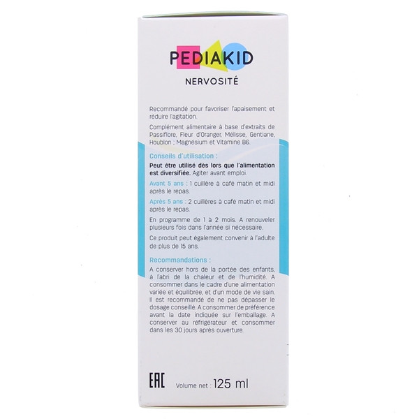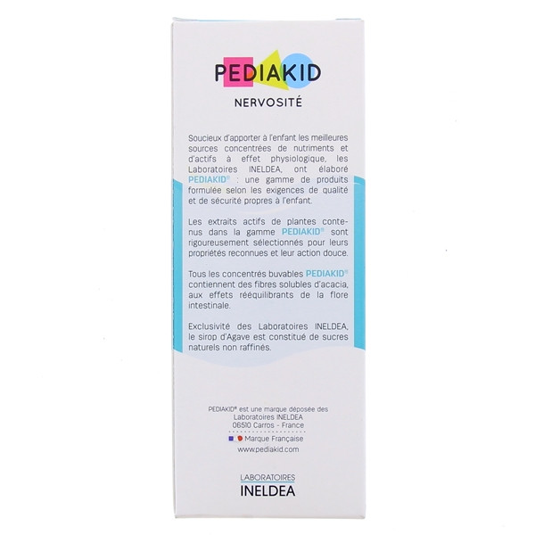 Le complément alimentaire « Nervosité » de la gamme PEDIAKID des laboratoires INELDEA est indiqué pour les enfants nerveux, agités et hyperactifs. Complément alimentaire sous forme de sirop aux arômes de cassis.