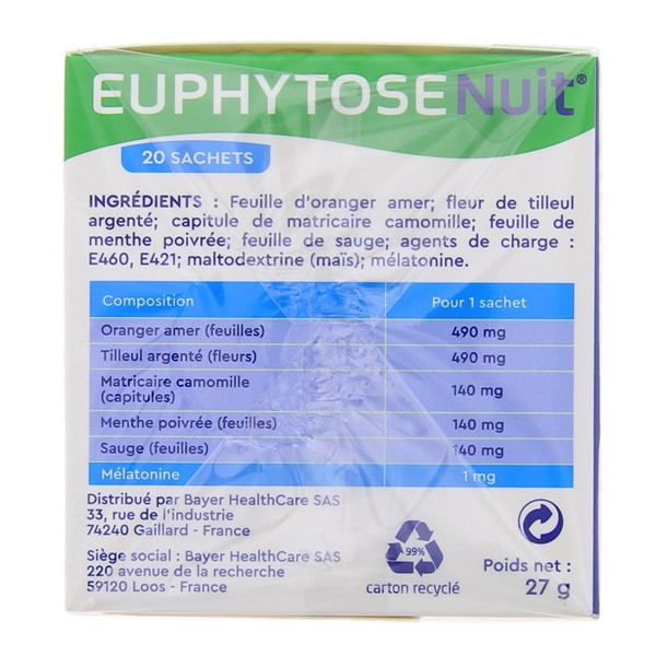 Vous avez des problèmes pour vous endormir ? Nos pharmaciens vous conseillent Euphytose Nuit. À base de Mélatonine et de Passiflore, Euphytose nuit est un complément alimentaire des laboratoires Bayer qui favorise un endormissement plus rapide et un sommeil réparateur.